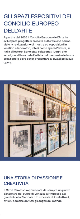 Il Consiglio Europeo dell’Arte promuove la Cultura pubblica, sostiene il dialogo con l’Arte tramite gli Artisti e favorisce legami con i diversi saperi, dentro e fuori i confini nazionali. Partendo da questi concetti chiave abbiamo sviluppato in sito che è un vero e proprio portale sul mondo dell'arte, dove il Concilio si mostra come cornice che non limita ma al contrario sottolinea, evidenzia , esalta artisti e cultura da tutto il mondo.